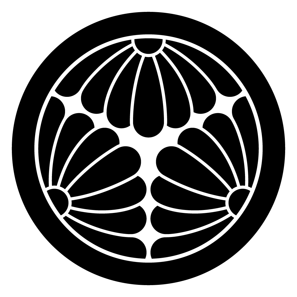 家紋「丸に三つ割り菊」の高精細フリー画像。