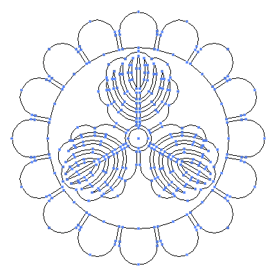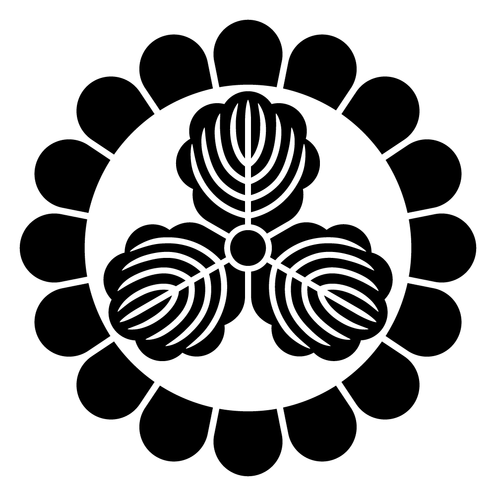 家紋「菊輪に三つ柏」の高精細フリー画像。