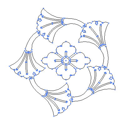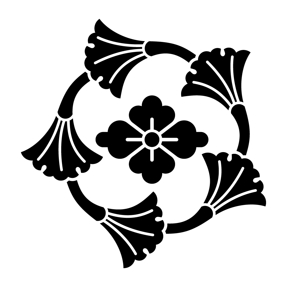 家紋「五つ追い銀杏に花菱」の高精細フリー画像。