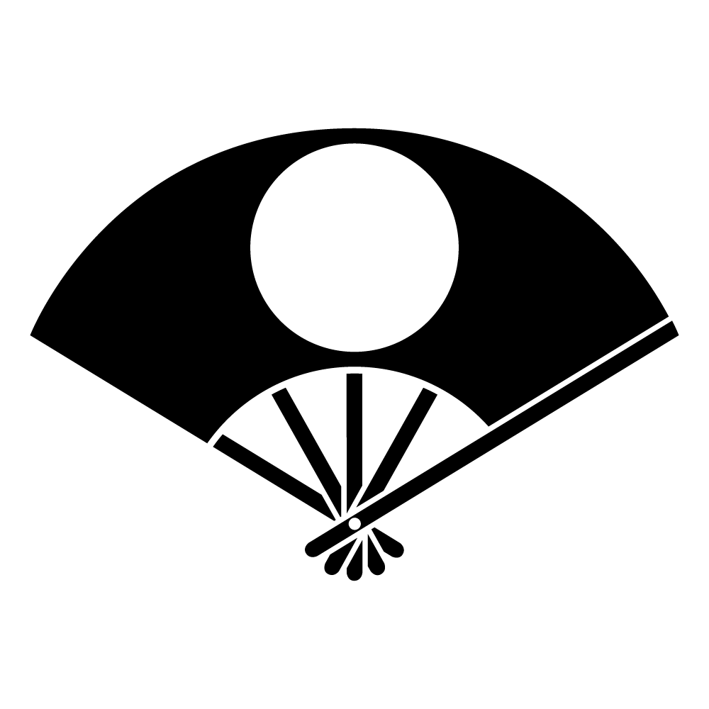 「(五本骨)扇に月丸」紋は扇紋の一種で、扇とは元は、古代中国よりもたらされた団扇からの派生で、通常の団扇とは「あおぐ」という主要な用途としては同一ですが、その造りには違いがあり、コンパクトに折り畳めるようになっている事が大きな特徴です。