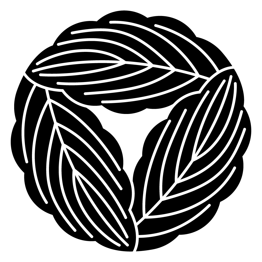 家紋『三つ追い重ね柏(みつおいかさねかしわ)』は、カシワの木をモチーフとし、現在では十大家紋の一つに数えられるほど広く普及しているカシワ紋種の一つです。