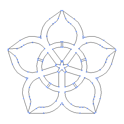 桔梗紋種は、キキョウの花の5枚の花弁を正五角形の中に均等に割り振ったシンプルなデザインが基本形で、これを変形させた「土岐桔梗」「剣形桔梗」「反り桔梗」や、花を裏側から捉えたコンセプトの「裏桔梗」、花弁を複弁にした「八重桔梗」「二重桔梗」などの種類があります。