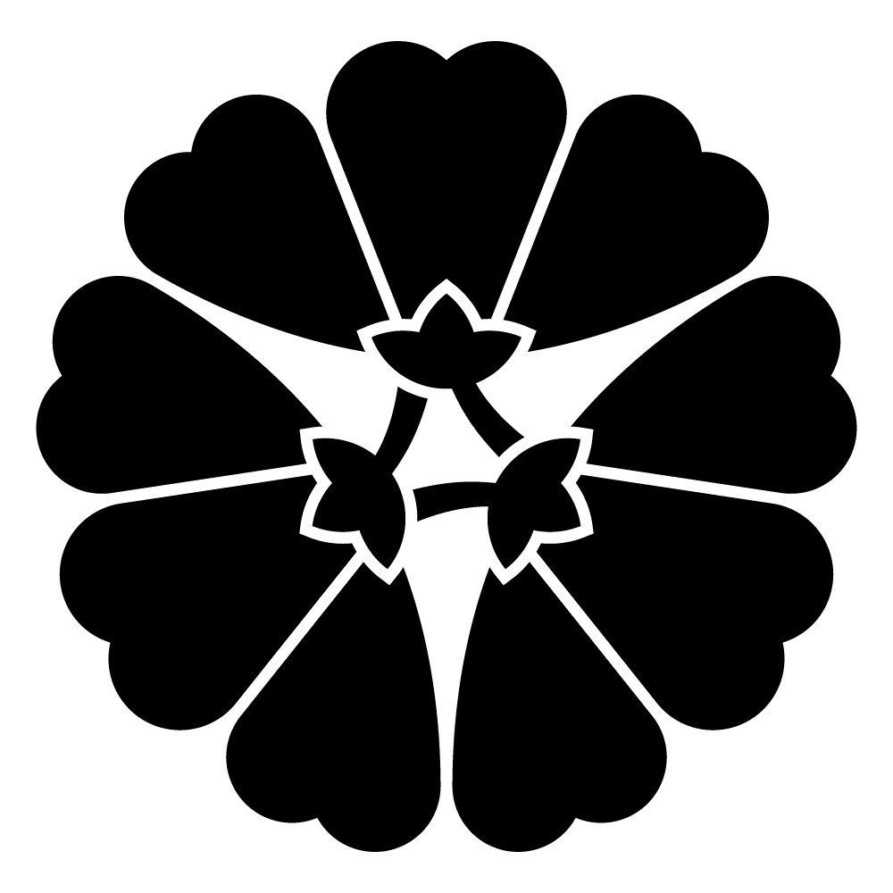 家紋「三つ横見桜」の高精細フリー画像。
