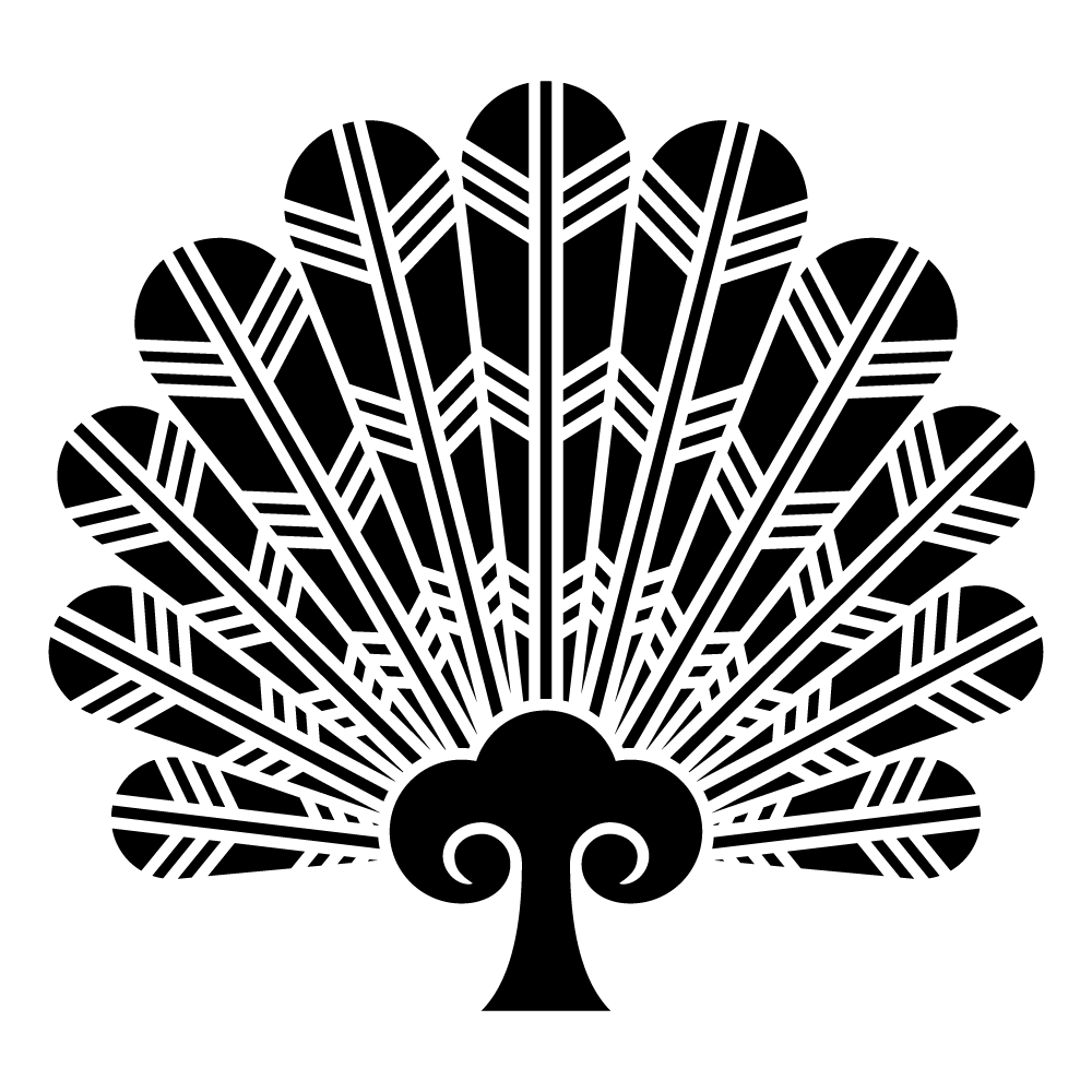 家紋・鷹の羽扇は、空の生態系の頂点に位置する猛禽類の一種であるタカの「羽根」の部分を象った紋章です。