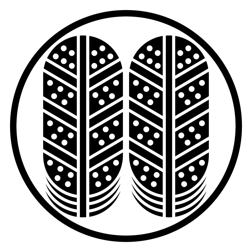 家紋・糸輪に斑入り並び鷹の羽は、空の生態系の頂点に位置する猛禽類の一種であるタカの「羽根」の部分を象った紋章です。