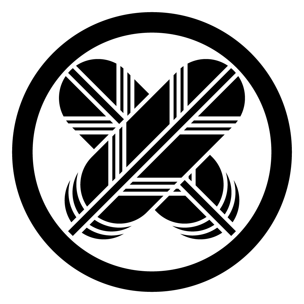 家紋・中輪に足付き細違い鷹の羽は、空の生態系の頂点に位置する猛禽類の一種であるタカの「羽根」の部分を象った紋章です。