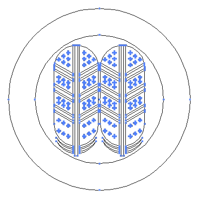 鷹の羽紋には「斜めにして交差」「単体〜複数を立てて横並び」「3〜複数を放射状に配する」など、そのデザインはバラエティに富みますが、実際の使用でいうと、二つの羽根を交差させた「違い鷹の羽」系の比率が飛び抜けて高いようです。