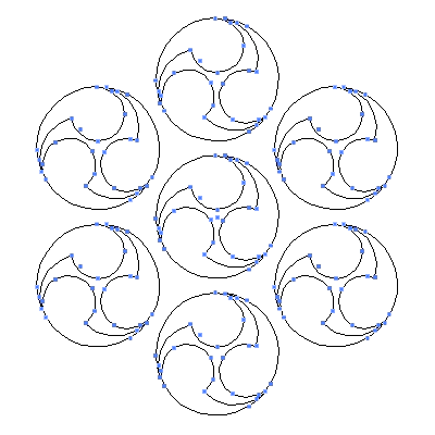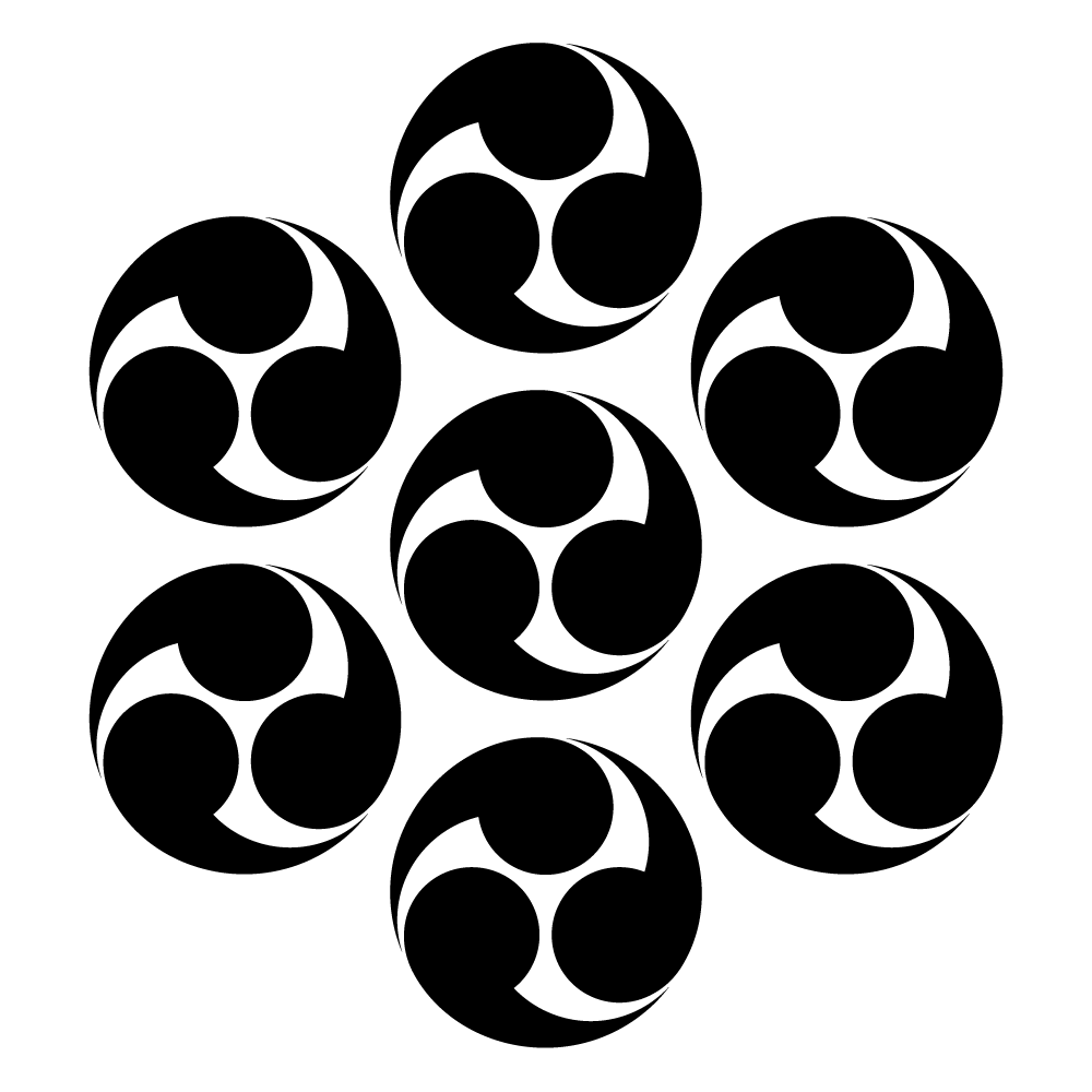 家紋・七曜三つ巴は、「オタマジャクシ」や「勾玉」に似た特徴的な形状を持つ図形を用いて構成される家紋の一群である『巴紋』の一種です。
