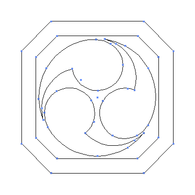 【隅切り平角に三つ巴】紋のフリー画像素材について