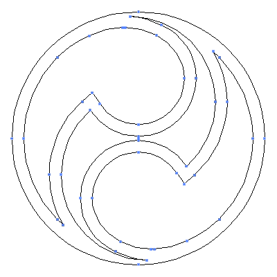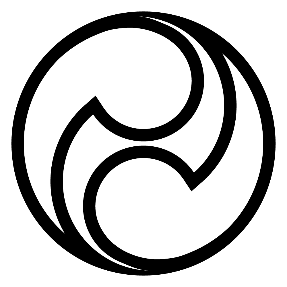 家紋・中陰左二つ巴は、「オタマジャクシ」や「勾玉」に似た特徴的な形状を持つ図形を用いて構成される家紋の一群である『巴紋』の一種です。