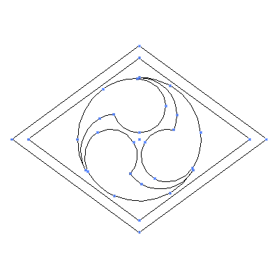 家紋・菱に三つ巴は、「オタマジャクシ」や「勾玉」に似た特徴的な形状を持つ図形を用いて構成される家紋の一群である『巴紋』の一種です。