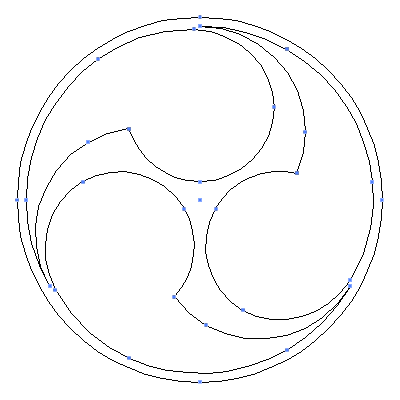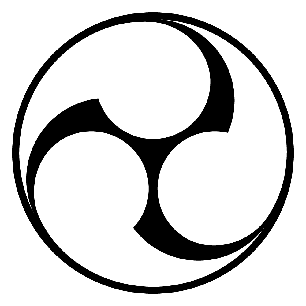 家紋・石持ち地抜き三つ巴は、「オタマジャクシ」や「勾玉」に似た特徴的な形状を持つ図形を用いて構成される家紋の一群である『巴紋』の一種です。